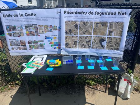 The event was held at the community garden located at the intersection of Lowell and Margin, with a goal of gaining community feedback and insight into what intersections most need safety interventions as well as what types of interventions residents would like to see. The photo above shows the outreach posters, with potential intersections on the right and potential interventions on the left. The list of intersections was narrowed down with community input, and the project will move forward with design of potential interventions. The event was a great way to interact with community members and project partners at Groundwork Lawrence and the Mayor’s Health Taskforce, who were instrumental in carrying out the event.