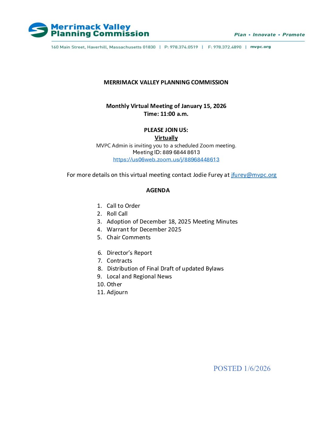 Merrimack Valley Planning Commission Merrimack Valley Planning Commission, Haverhill, MA, United StatesMeetingAgenda December 18 2025 Commissioners